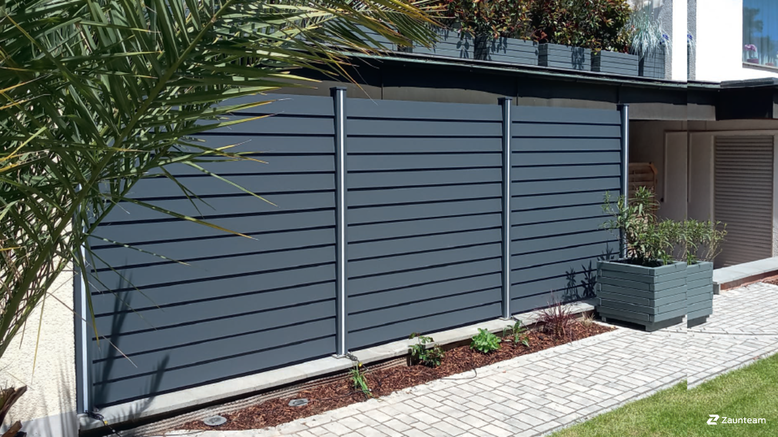 Une clôture pare-vue en aluminium est la solution idéale pour les amateurs de jardins qui souhaitent allier intimité et durabilité. Cette clôture de jardin se distingue par sa résistance à la corrosion et sa fabrication de haute qualité, parfaite pour tous les espaces extérieurs. Les éléments de pare-vue en aluminium sont disponibles en plusieurs variantes de lames et peuvent être personnalisés dans toutes les couleurs RAL selon vos envies. Que ce soit pour protéger votre jardin des regards indiscrets ou pour délimiter votre propriété, cette clôture allie fonctionnalité et design moderne. Avec un portail assorti, vous obtenez une solution harmonieuse et esthétique. Idéale pour les jardins privés et les espaces professionnels, cette clôture en aluminium offre protection et intimité dans tous les jardins. Avec Zaunteam, profitez d’un service complet, de la consultation à l’installation professionnelle.