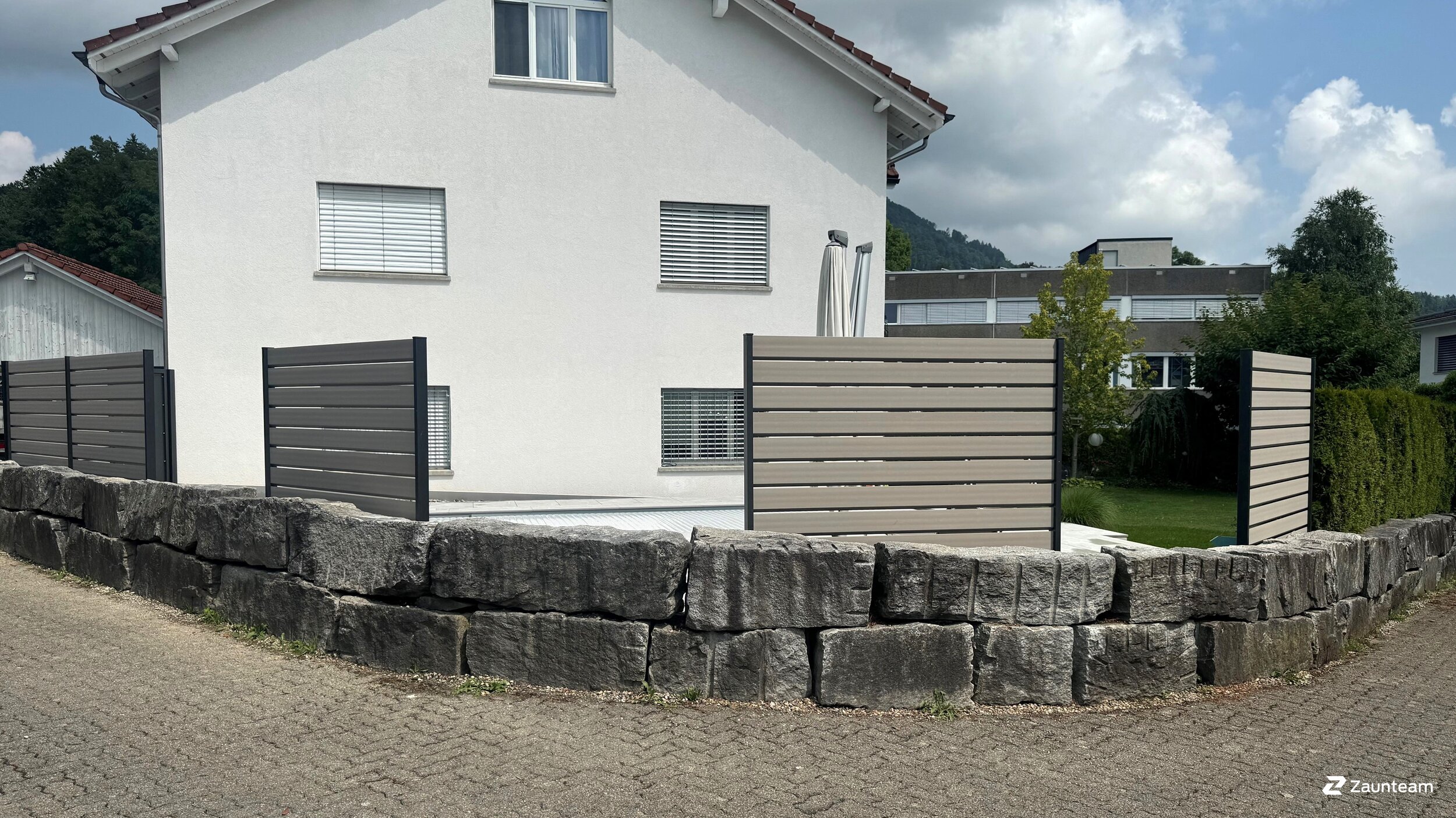 La structure modulaire de ces modèles de brise-vue, avec leurs inserts en verre et en aluminium très esthétiques, offre une multitude de possibilités de conception. Avec ses poteaux en aluminium légers et résistants à la corrosion, le brise-vue présente une résistance maximale aux influences environnementales.