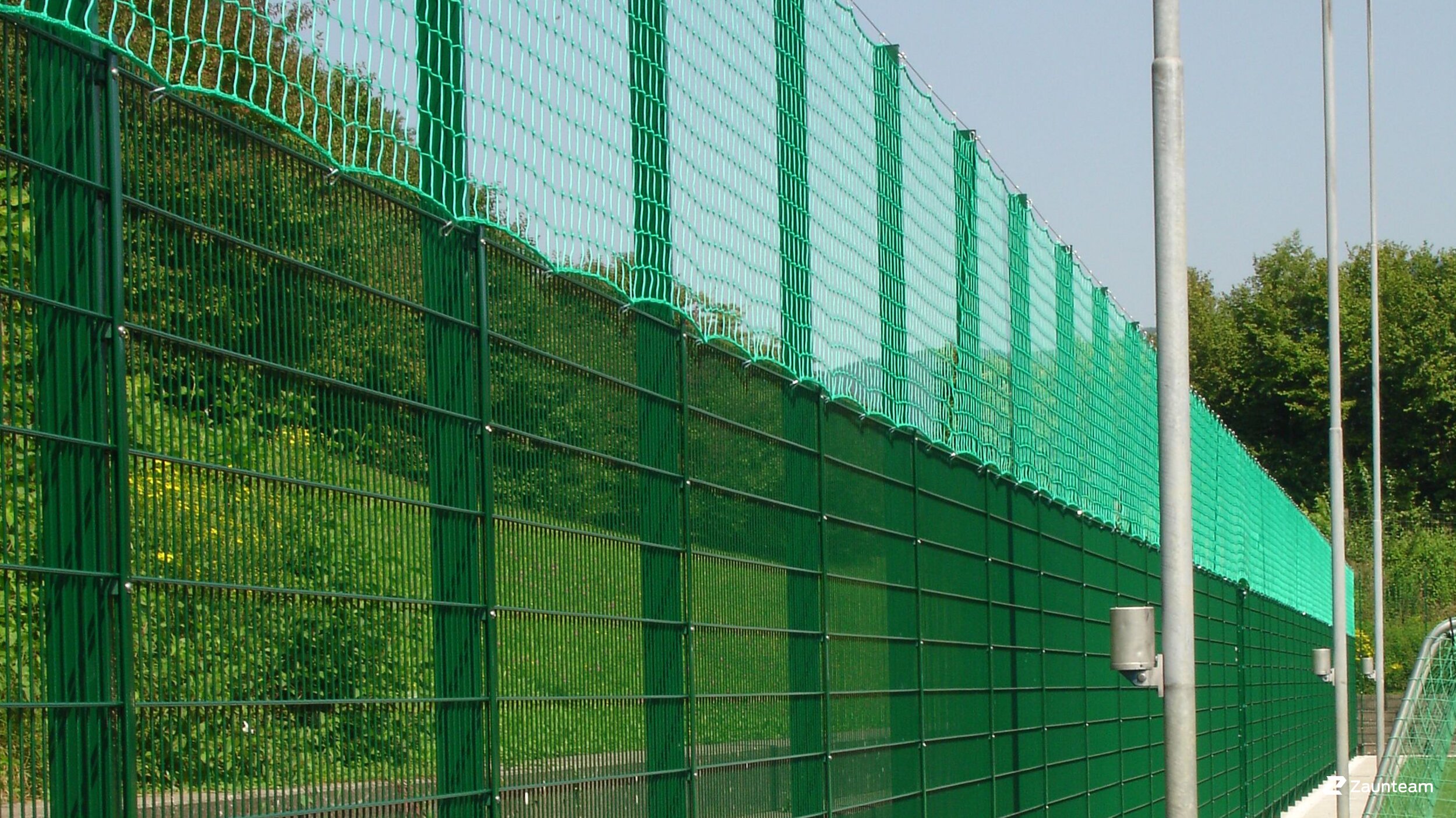 Les clôtures et les filets pare-ballons sont utilisés comme filets de sport et de protection non seulement sur les terrains de football, mais aussi spécifiquement pour le beach-volley, le badminton, le tennis, le hockey, le lancer du disque et le lancer du marteau. La combinaison d’un panneau double fil en bas et d’un filet en plastique en haut garantit une protection solide qui arrête les balles les plus hautes.
