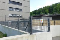 Ce portail peut être combiné avec de nombreux systèmes de clôture, que ce soit dans le domaine privé, industriel ou public. Les caractéristiques particulières des portails industriels sont le sens d’ouverture variable, la butée variable, la garniture de poignée en aluminium de qualité supérieure ainsi que la construction robuste.